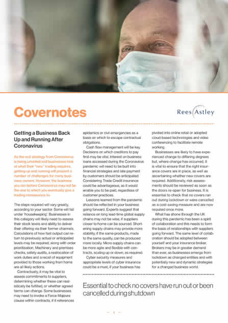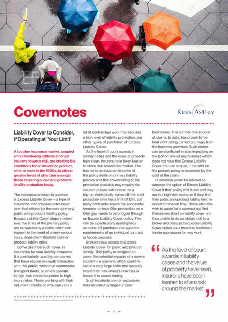 Covernotes is a quarterly magazine intended primarily for our commercial clients to keep them abreast of current insurance and regulatory matters that may be relevant to the running of their businesses.